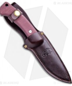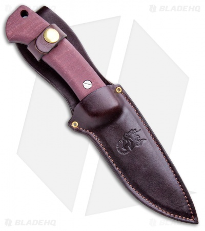 The Ranch is a heavy duty fixed blade from Hinderer Knives built to tackle the toughest jobs in the most difficult conditions. This model is outfitted with a burgundy micarta handle and a black blade. Item includes a premium leather belt sheath.