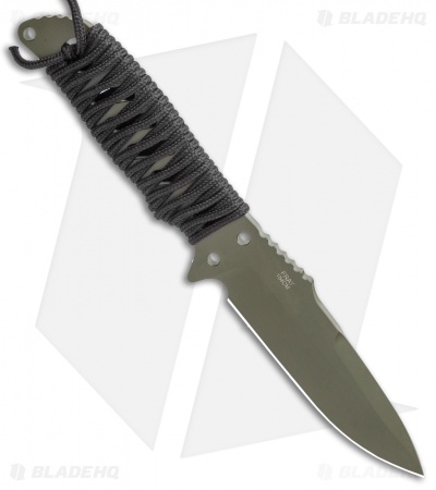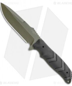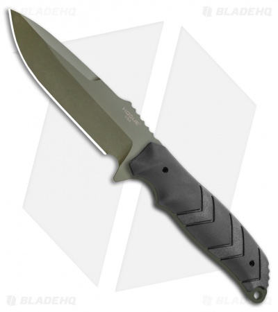 This HK Fray model is built with an OD Green finished drop point blade and a black rubber handle. The Fray from HK Knives is a nimble and versatile fixed blade constructed from a single piece of 154CM stainless steel. Thumb ramp jimping and a deep choil offer a secure grip in any conditions.