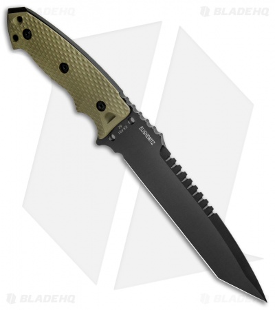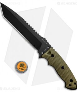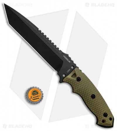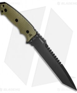 This EX-F01 model has a large black finished tanto blade and an OD green G-10 handle.