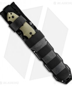 The EX-F01 knife is tough, with a 1/4″ thick A2 tool steel blade this tactical fixed blade isn’t the type to let you down. The 7″ blade is full tang with an extended striker at the base. The shape and contour of the handle offers extreme comfort and grip with the index groove below and spine notches up top. The G-10 handle scales feature a textured pattern for a high performance grip. The EX-F01 includes a black Milspec ballistic nylon sheath with a MOLLE compatible back.