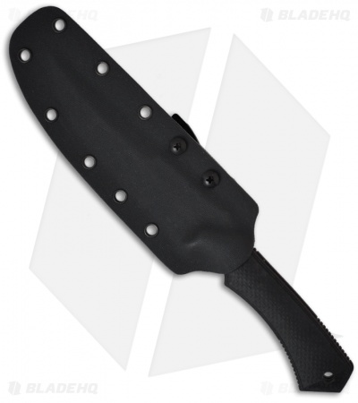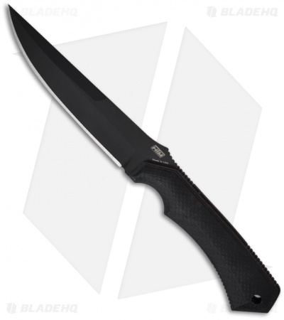This HTM manufactured Randall King Desert Enforcer is an impressive fixed blade combat knife. It features 3D textured G-10 handle scales over a full-tang S30V stainless steel blade. The clip-point blade is black DLC finished with a plain cutting edge. The Desert Enforcer comes with a fitted Kydex sheath.