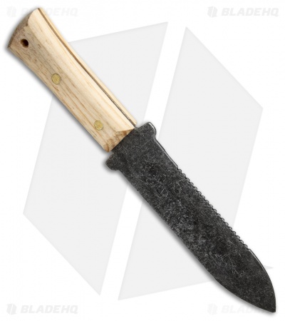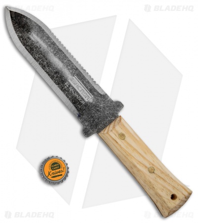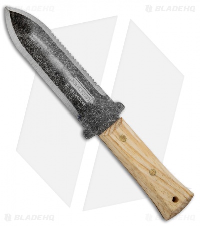 The Imacasa Soil knife is a traditional Japanese fixed blade that is used for digging, weeding and landscaping work. It has a concave, shovel-like, double-edged dagger blade with serrations on one side. The handle is made from naturally finished wood and the blade is black stonewash finished stainless steel. Item comes with a black nylon sheath. The Imacasa Soil knife is the perfect tool for working in your yard or garden.