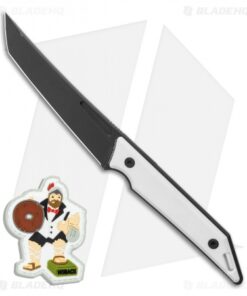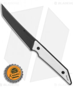 This Jake Hoback custom Goliath is a small, handy fixed blade knife. It has a Black DLC finished blade made from CPM-20CV in a tanto style. The handle is made from white G-10 that has been textured for a secure grip. The included kydex sheath has an attached pocket clip for EDC.