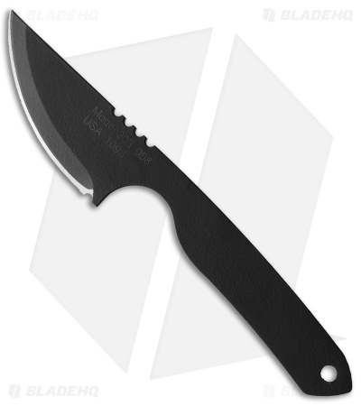 This tough fixed blade neck knife from Jason Perry Blade Works is a sturdy one piece construction piece. A large choil protects your fingers while heavy jimping gives you great grip and makes it easy to choke up on the handle for detailed or fine work. The powder coated blade is simple to maintain, and the design means you have a fixed blade that is easily accessible, conveniently concealed, and super portable. Meet your knife needs with a blade that’s right there at your fingertips.