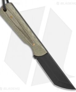 - Black tanto blade made from 1095 high carbon steel with a chisel grind.
