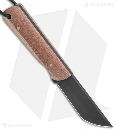 - Black tanto blade made from 1095 high carbon steel with a chisel grind.