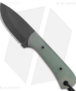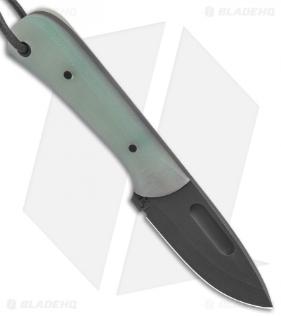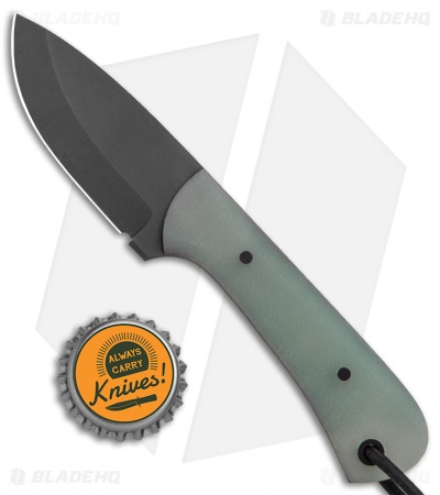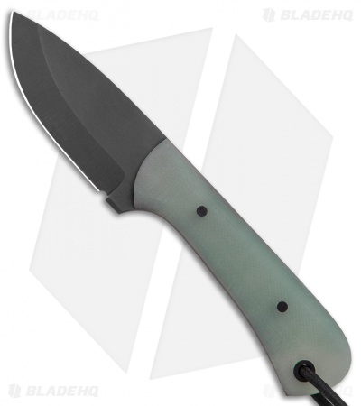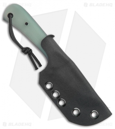 - Jade G-10 handle scales held to a full tang by black G-10 pins.