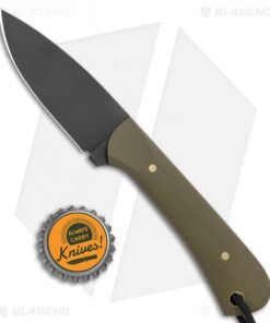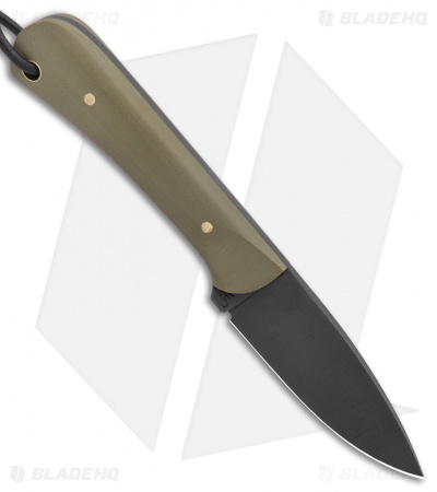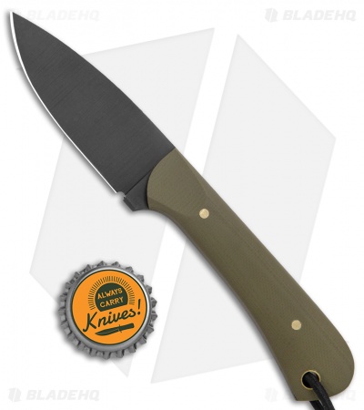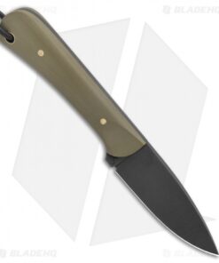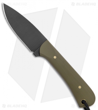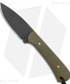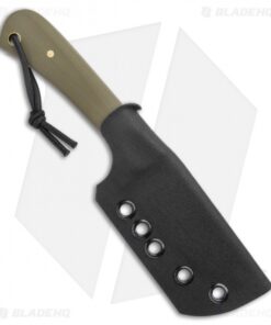 - Green G-10 handle scales over a full tang.