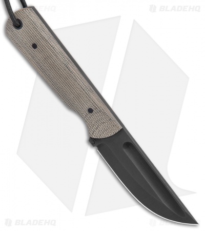 - Black standard blade made from 1095 high carbon steel with a chisel grind and fuller.