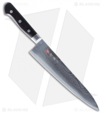 Sporting a 33 layer Damascus steel blade with a VG-10 stainless steel core is beautiful and functional. The long cutting edge chops, minces and slices with ease and minimal effort. A comfortable black handle allows for exceptional control of the knife with little to no hand fatigue.