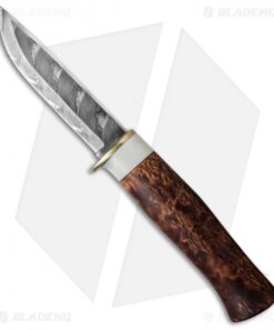 The Karesuando Beaver fixed blade is a stunning collection piece made with authentic Swedish materials and knife-making techniques. It has a handle made from oiled curly birch and antler horn, that has been hand carved to provide a comfortable, ergonomic grip. The blade is made from Northern Lights damascus steel that is offset nicely by the rustic handle. Take your fixed blade collection to the next level with the Beaver fixed blade from Karesuando Kniven.
