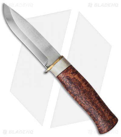 The Hunter 10 fixed blade is a traditionally made hunting knife featuring quality Swedish materials. It has a curly birch and antler handle that has been hand carved to provide a soft and comfortable grip. The satin finished Sandvik 12C27 steel blade provides a strong cutting surface that offers excellent edge performance and corrosion resistance. Pick up the durable Swedish quality only Karesuando Kniven can provide with the Hunter 10 fixed blade.