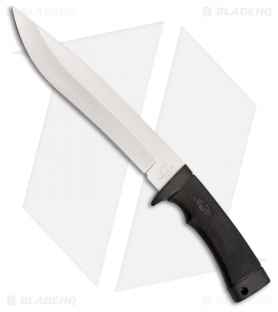 The Katz Knives Black Kat 308 fixed blade knife features a 8″ hollow ground drop point blade and black Kraton handle. Perfect for any hunting trip, the large canted blade and ergonomic handle allow for prolonged use with little to no fatigue. The 8″ XT-70 stainless steel blade with high hollow grind and satin finish, makes slicing and chopping a breeze. The checkered Kraton handle provides excellent traction, combined with a generous finger groove and handle guard, you can feel confident with the Black Kat in hand. Includes black cordura sheath for easy carry or storage.