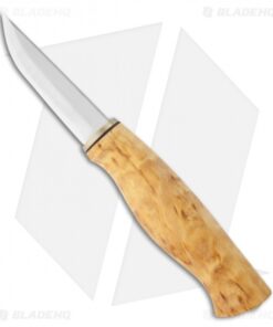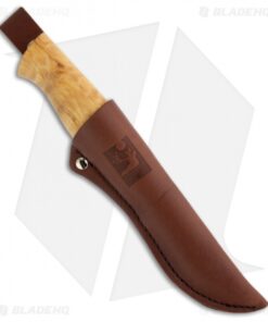 The Falcon is a traditional puukko style fixed blade knife, hand-made in Finland. It features curly birch wood handle with nickel silver bolsters. Full-tang stainless steel blade. Includes a premium leather sheath with belt loop.