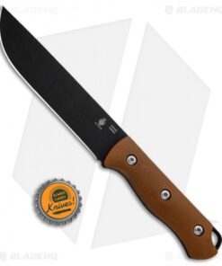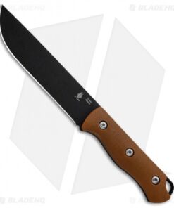 This Bush Knife sports a brown G-10 handle and a black finished blade.