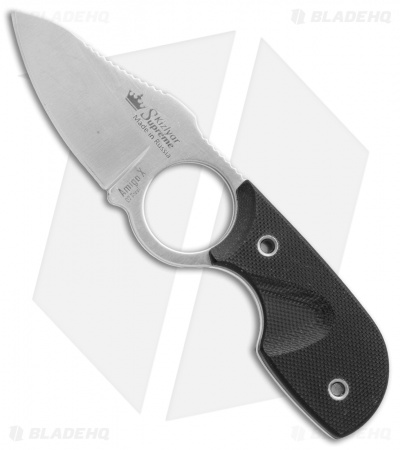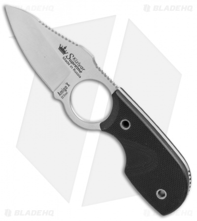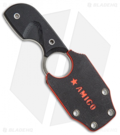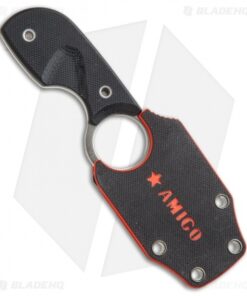 This Amigo model is outfitted with a D2 steel blade with a satin finish. The Amigo X was designed from the ground up to be a class leading neck knife. It has just about everything you’re looking for in a small everyday fixed blade, including consideration for safety, size and weight, ease of extraction, premium materials, and uncompromising utility. This Amigo X has a full-tang blade with lightly textured black G-10 scales. The index finger ring ensures a reliably grip in all conditions. An exciting element of the Amigo is the sturdy, yet lightweight G-10 sheath.