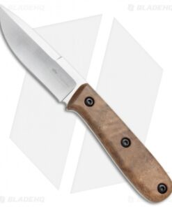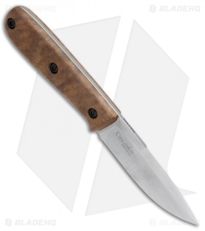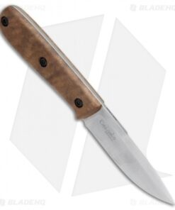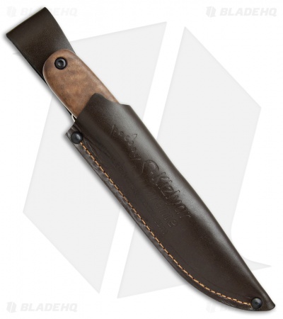 The Kizlyar Colada is a rugged outdoor fixed blade with a classic design. It features a beautiful root-wood walnut handle from the Caucasus Mountains of Russia. This knife has a full-tang AUS-8 stainless steel blade with a bellied edge for slicing, and a narrow swedge for easy piercing. Includes a genuine leather belt sheath