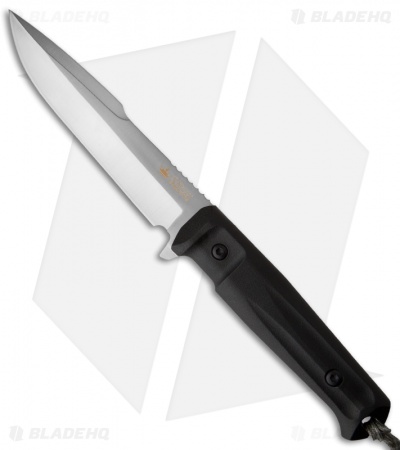 This Kizlyar Supreme Knives Delta has a black handle and a satin AUS-8 harpoon blade.