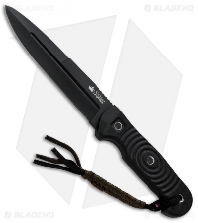 This knife has a black coated AUS-8 steel blade and black G-10 scales.
