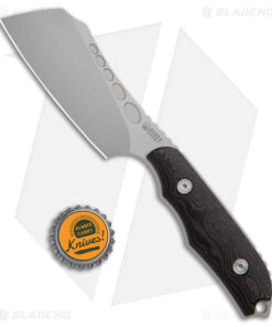 - Bead-blasted D2 tool steel blade in a cleaver style.