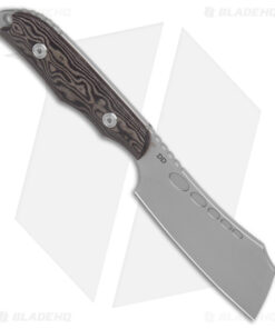 The Kubey Aiden is a cleaver-style fixed blade knife. Its blade and handle are modern in shape and materials and have eye-catching designs. The blade comes housed in a brown leather sheath, and the handle is ergonomic and comfortable. For a contemporary fixed blade with a modern aesthetic and a classics feel, do with the Aiden.