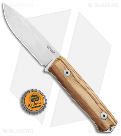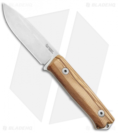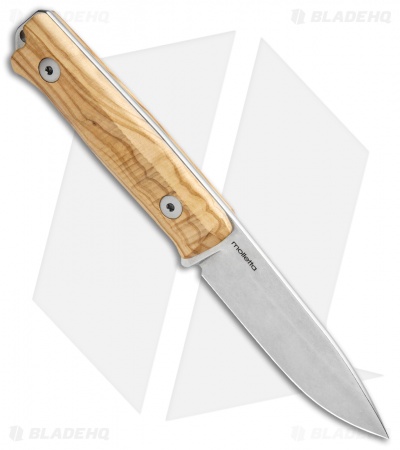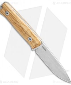 This model of the LionSteel Bushcraft B-40 sports a textured olive wood handle with a stonewashed blade made from Sleipner steel.