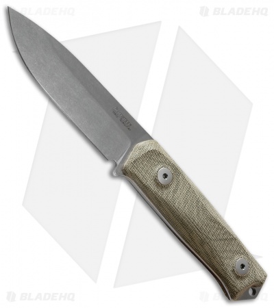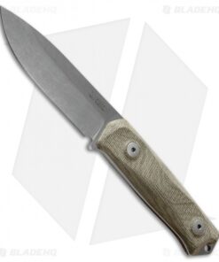 LionSteel Bushcraft B41 Fixed Blade Knife Green Micarta (4″ Stonewash)