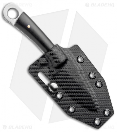 The Stealth is a rather fascinating neck knife that utilizes the Skeleton Key footprint and matches it to a premium black paper micarta handle. The polished scales provide excellent feel in hand and the pleasing aesthetic of smooth finished micarta. Perfect for neck carry, the Stealth includes a Kydex sheath.