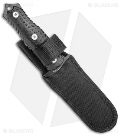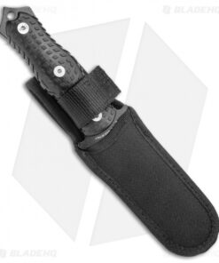 - Black-finished stainless steel blade with a serrated edge.