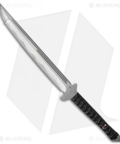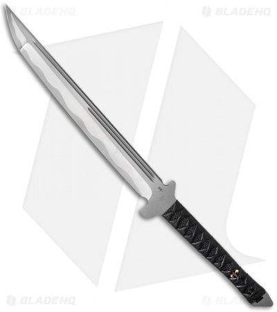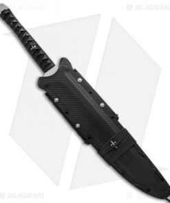 Based on the Japanese sword, the Combat Wakizashi is an inspired design from Tony Marfione. It is made from 1/4″ thick D2 steel and features a hollow hand ground edge that is satin with a bead blasted simulated hamon finish. The Combat Wakizashi has a traditional rayskin handle with leather wrap and a custom Dagger woven in on each side. This is a substantial piece that includes a fitted Kydex sheath.