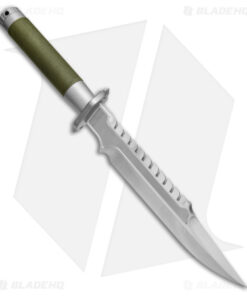 - Hand rubbed satin Bohler M390 steel blade with a sharpened clip point and saw tooth spine.