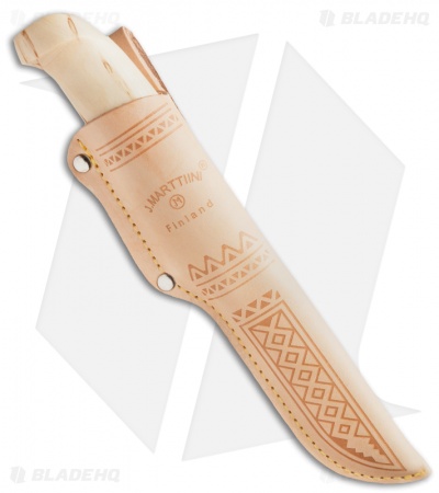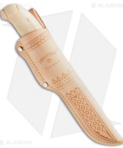 A great, all-purpose hunting and skinning knife that is well balanced, easy to handle, and has a good feel in the hand. The stainless steel clip point blade has the “J. Marttiini Finland” engraving. The curly birch handle is ergonomically shaped for ease of use, and it features a gold-coated finger guard for added safety. A natural leather sheath with an embossed design and an attached belt loop makes this knife easy to carry and ensures you’ll have this excellent blade at hand when you need it.
