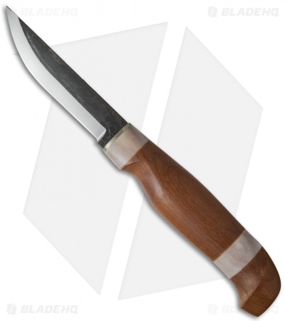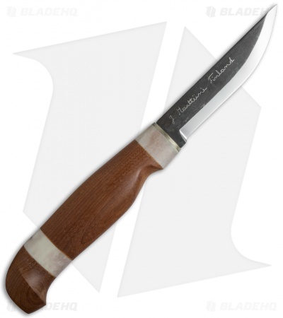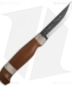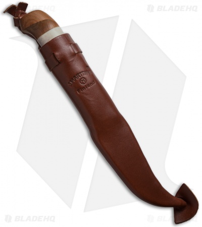 The warmth and beauty of this knife come from the heat-treated birch wood handle and the creamy look of the reindeer antler insets. In Finland, the home of Marttiini Knives, reindeer horn is associated with traditional mysticism, which enhances the unique design of this knife. The carbon steel blade has a two-tone look with the unfinished and mirror finished sections sitting side by side. The standard blade style makes this knife perfect for your everyday chores and tasks. To make sure this blade is around for years to come, be sure to dry it carefully after use and oil it with an unsalted oil regularly to prevent tarnish and help to keep the finished edge. Comes with a leather sheath with attached belt loop for easy carry.