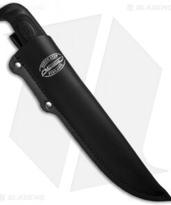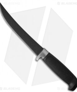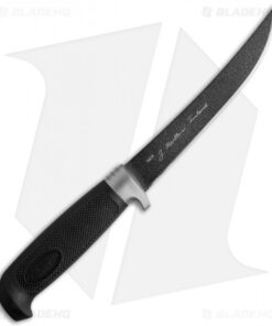 The Martef coating on this fixed blade hunting knife gives it the ability to slice through tough tasks with ease. The trailing point blade is Titanium, and the Martef coating works almost like Teflon. It repels moisture and dirt, reduces friction, and protects the blade from corrosion. This blade will slice through meat or fish like a hot knife through butter. The handle is a black, textured rubber that provides a secure grip. This knife comes with a black leather sheath with an attached belt loop for easy access and carry, and the J. Marttiini Finland signature etched on the blade.