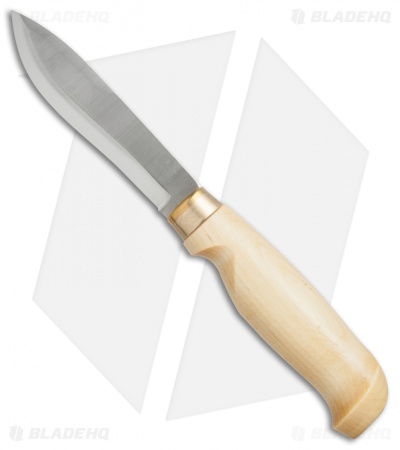 The Marttiini Skinner Knife offers a narrow tip and a curved belly for accurate skinning. A spine side cutting edge allows for precise cutting work in tight corners. Item includes a genuine leather belt sheath with an embossed design.
