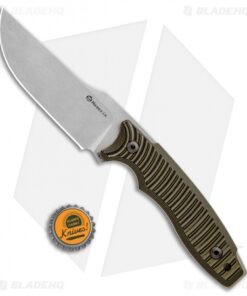 The Maserin L.E.O. offers a high performance fixed blade design for tactical or EDC use. This model is built with a stonewashed blade and a black and green G-10 handle. The full-tang blade has an extended tang for striking applications. Spine jimping along the thumb rest and an index groove provide a high performance grip for your toughest jobs. The blade is made from Bohler N690 steel with a long curved edge for versatile use. Item includes a fitted kydex sheath with dual leather belt loops.