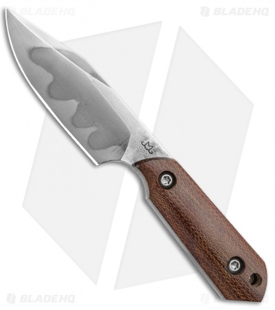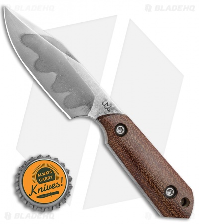 The Maverick Customs Compact Clip Point is an EDC friendly fixed blade knife built with brown micarta handle scales. The flat ground, hamon finished blade and generous ergonomic handle make this knife an excellent choice for a diverse range of cutting chores. Item includes a kydex sheath with dual belt loop straps.