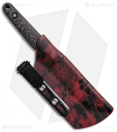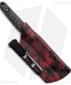 The Maverick Customs Gentleman’s Poker is an EDC friendly fixed blade knife made from CPM-10V steel with red twill carbon fiber handle scales. The flat ground blade mixed with the generous handle make this knife an excellent choice for a variety of cutting chores. It comes with a kydex sheath with an adjustable pocket clip attachment.