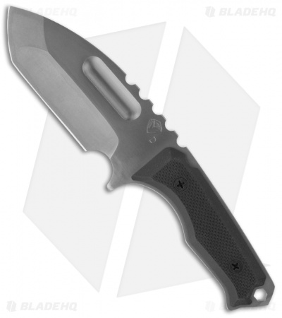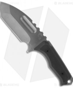 - Black G-10 handle scales on a meaty full tang.