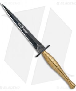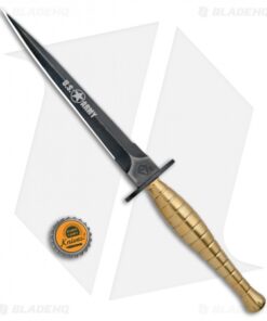 This FS Commando Dagger fixed blade has a brass handle and a black PVD coated blade with an ARMY laser engraving.