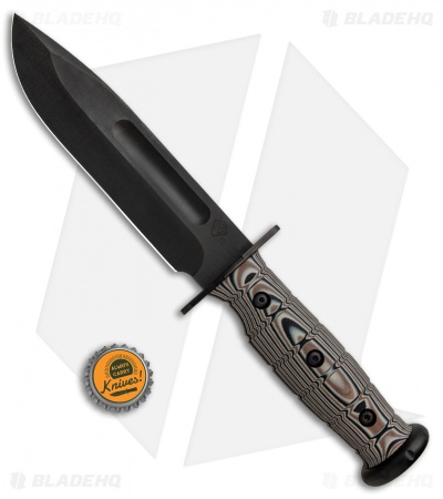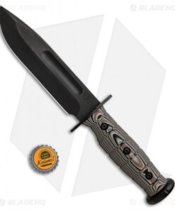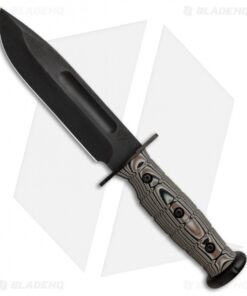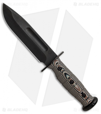 The Medford USMC Fighter provides a modern enhanced update to the classic USMC fighting knife. This model is outfitted with a tan multi-cam G-10 handle and a black PVD blade made from S35VN steel. The 3-D surfaced handle provides a sure grip, backed up by an interlocking titanium hilt. Item comes equipped with custom brown leather belt sheath.