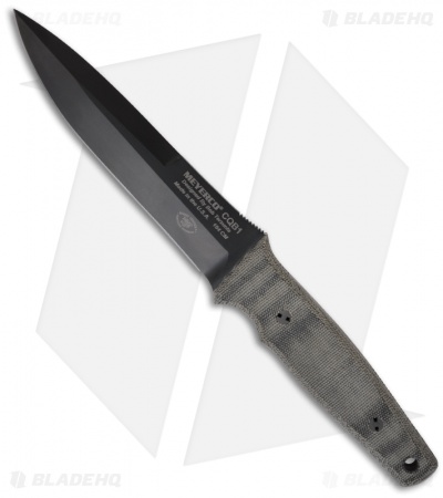 The Meyerco CQB Bob Terzuola designed tactical fixed blade combat knife is a high quality piece that is made for field duty. The 154CM steel blade has a low profile and false upper grind for serious performance. The blade is black finished with a plain cutting edge. The full tang blade features contoured canvas Micarta scales to ensure the hand has plenty to hold on to. The injection molded sheath is MOLLE capatible for multiple carry options.
