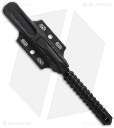 The A.D.O. (Alpha Detachment Operative) is an extraordinary fixed blade knife from Microtech. This ADO features a black finished double-edge dagger blade (plain) and handle with a waffle-style texture. This knife follows the design of Chris Reeve fixed blades with a hollow handle, accessed by unscrewing the glass breaker tip. It is made from a solid billet of stainless steel. The A.D.O. includes a composite sheath with a spring loaded tab to secure knife and a 2″ steel clip for belt carry.