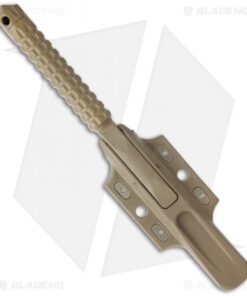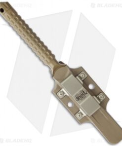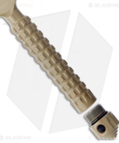 The A.D.O. (Alpha Detachment Operative) is an extraordinary fixed blade knife from Microtech. This ADO features a tan finished double-edge dagger blade (plain) and handle with a waffle-style texture. This knife follows the design of Chris Reeve fixed blades with a hollow handle, accessed by unscrewing the glass breaker tip. It is made from a solid billet of stainless steel. The A.D.O. includes a composite sheath with a spring loaded tab to secure knife and a 2″ steel clip for belt carry.