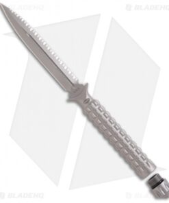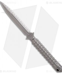 The A.D.O. (Alpha Detachment Operative) is an extraordinary fixed blade from Microtech. This one features a bead blast finished dagger blade (fully serrated) and handle with a waffle-style texture. This knife follows the design of Chris Reeve fixed blades with a hollow handle, accessed by unscrewing the glass breaker tip. It is made from a solid billet of stainless steel. The A.D.O. includes a composite sheath with a spring loaded tab to secure knife and 2″ steel clip for belt carry.