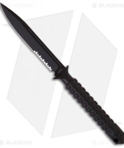 The A.D.O. (Alpha Detachment Operative) is an extraordinary fixed blade knife from Microtech. This ADO features a black finished single edge blade (partially serrated) and handle with a waffle-style texture. This knife follows the design of Chris Reeve fixed blades with a hollow handle, accessed by unscrewing the glass breaker tip. It is made from a solid billet of stainless steel. The A.D.O. includes a composite sheath with a spring loaded tab to secure knife and a 2″ steel clip for belt carry.