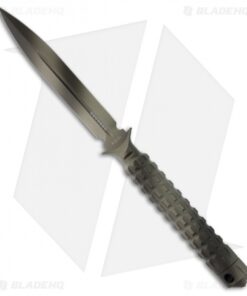 The A.D.O. (Alpha Detachment Operative) is an extraordinary fixed blade knife from Microtech. This ADO features a stealth camo finished double-edge dagger blade (plain) and handle with a waffle-style texture. This knife follows the design of Chris Reeve fixed blades with a hollow handle, accessed by unscrewing the glass breaker tip. It is made from a solid billet of stainless steel. The A.D.O. includes a composite sheath with a spring loaded tab to secure knife and a 2″ steel clip for belt carry.
