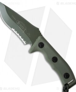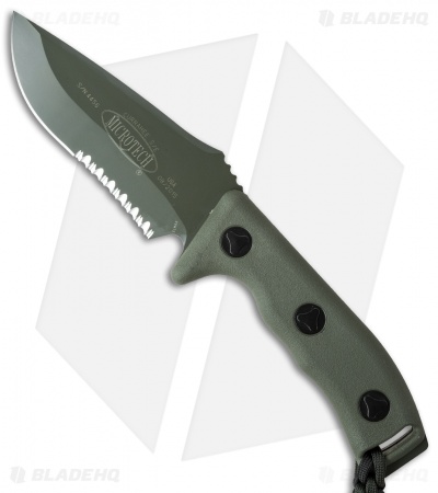 Microtech Currahee Drop Point Knife Fixed Blade (4.5″ Green Serr Elmax) 102-2GR