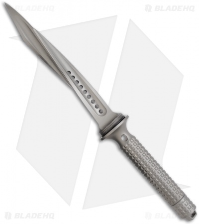 The Microtech Jagdkommando is a unique knife that has been milled from a solid piece of stainless steel! The blade’s three sharpened edges twist as they come to a point while the grooved faces feature drilled holes that flow seamlessly together. The hollow handle has a waffle texture and threaded end cap.