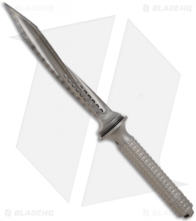 The Microtech Jagdkommando is a unique knife that has been milled from a solid piece of titanium with heat anodized edges! The blade’s three sharpened edges twist as they come to a point while the grooved faces feature drilled holes that flow seamlessly together. The hollow handle has a waffle texture and threaded end cap.